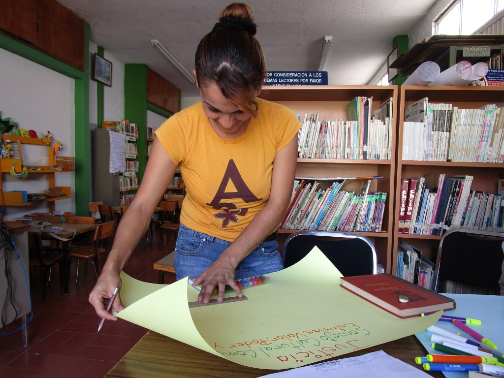 Entonces de lo que se trata el trabajo comunitario es de dejar el manual en el librero, sólo para consultas ocasionales, y de buscar cartulinas fluorescentes. Me explico:
