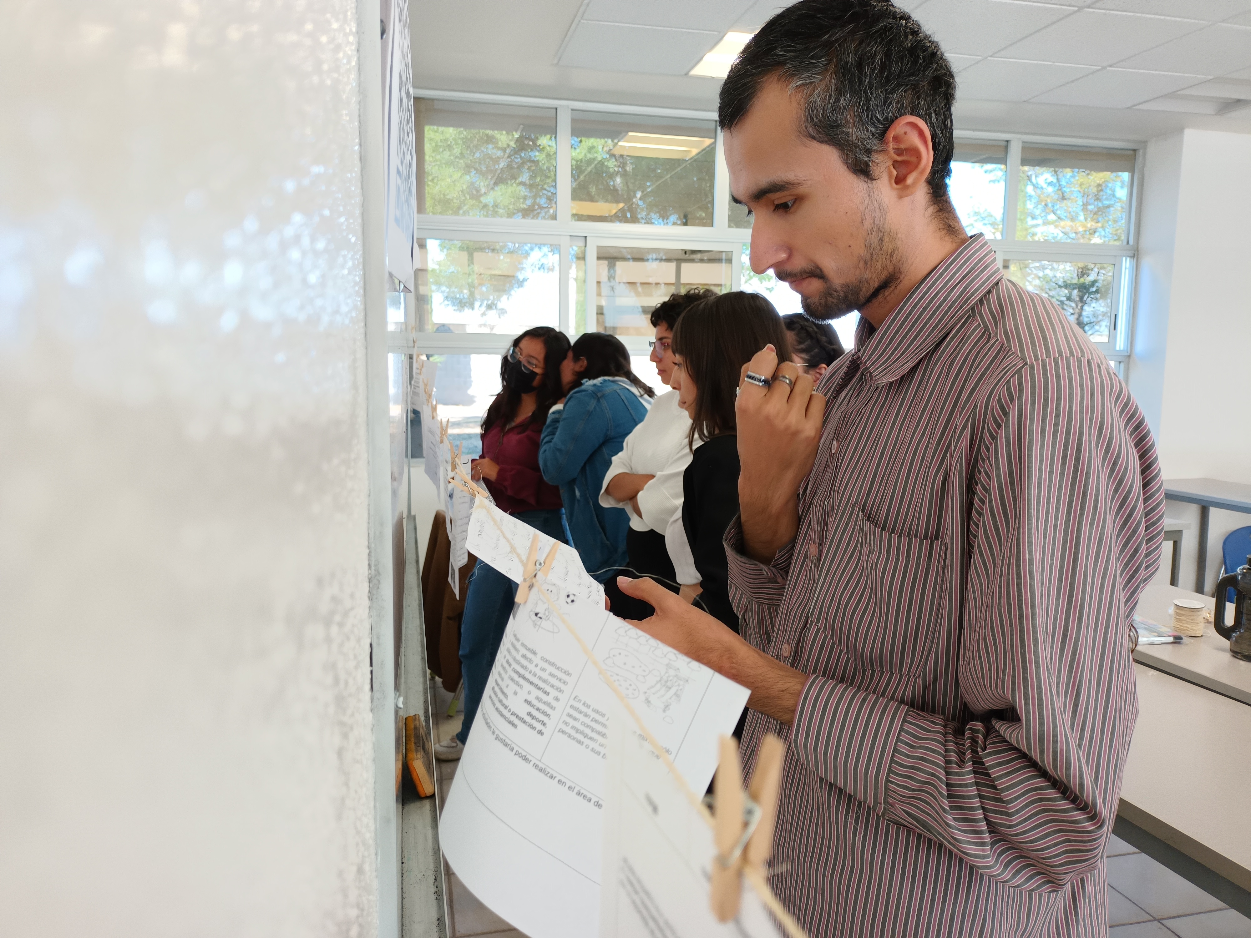 La siguiente pauta fue levantarnos a ver el tendedero, explorarlo, leer cada uno de los textos escritos y esperar a que uno que no fuera el nuestro nos convocara, es decir, que nos resonara de nueva cuenta. Una vez elegido, la pauta fue tomarlo y regresar al círculo de conversación. Es importante decir que en este ejercicio me impliqué en todo momento como docente. Nunca fui espectador. Escribí mis resonancias y las colgué. Conversé, leí el escrito de unx estudiante y no tuve la última palabra. La intención fue descolocarme como maestro explicador.