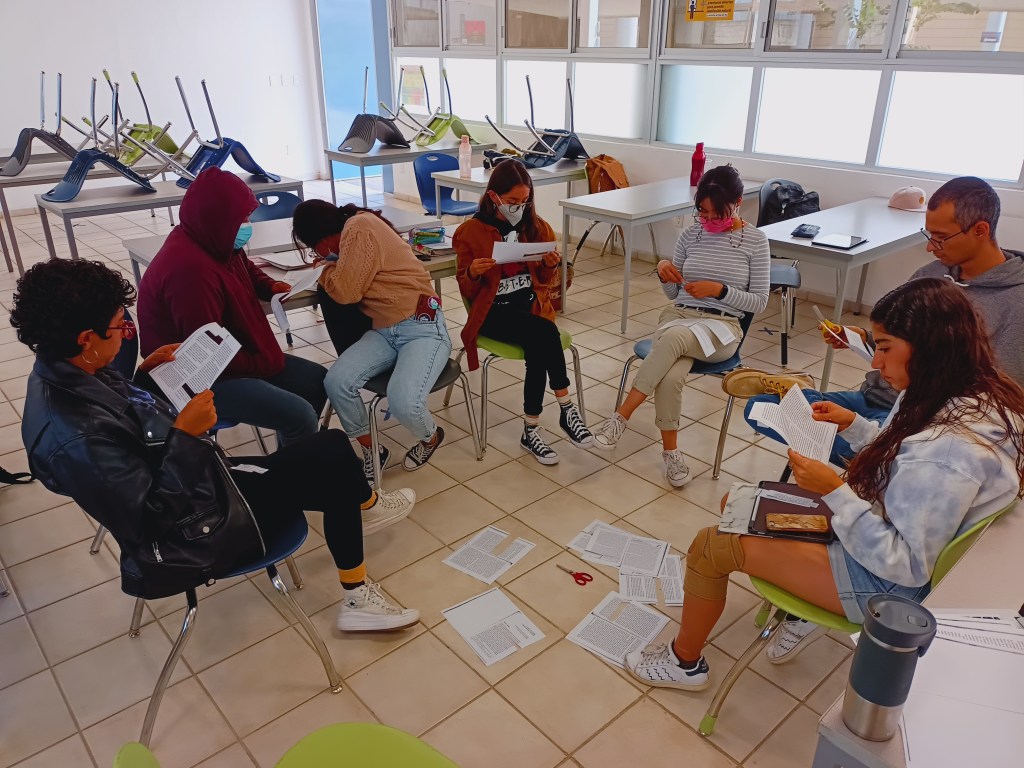 Una vez satisfecha la ansiedad de búsqueda, la siguiente indicación fue que colocaran los fragmentos de texto recortados en un orden que les gustara más, que reelaboraran el discurso “pegando” los recortes uno tras otro sobre su cuaderno, libreta u hoja. Todxs lo hicimos. Luego de acomodar los retazos de ideas, pasamos a leer el nuevo discurso, el nuevo orden de ideas, de forma voluntaria, pero invitando a que todxs leyéramos. En ese proceso me impliqué también como educador, participando en todo momento en el artilugio.