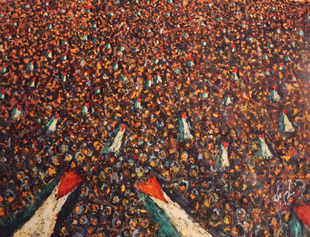 Imagen de portada: Pintura al óleo de la artista palestina Maram Ali, que lleva por título Will he give up his land?, 2024